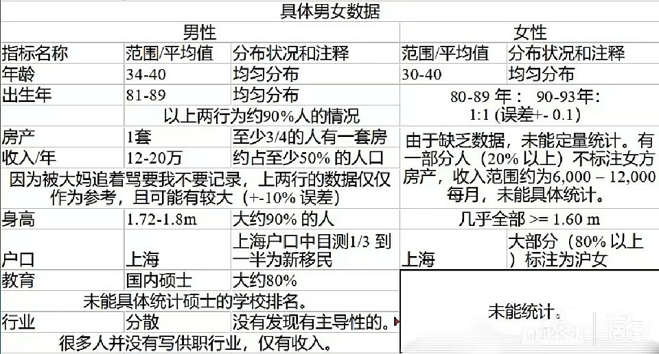 调查尾声,他声明,信息仅供参考,“本人反对物化人类或者给人类个体标价,也反对相亲市场出现的包办婚姻意图”。他试图用调查报告纠正他认为的相亲误区,特别是“简历式相亲”的误区——“除非你认为一张A4纸足够代表你这个人,否则你不应该用这种方式寻找另一半。”